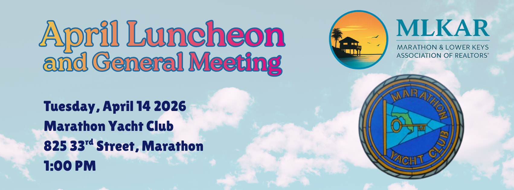Marathon and Lower Keys Association of Realtors' will hold their monthly luncheon and general membership meeting on Tuesday April 14 at 1:00 PM. Registration is $20. Raffle tickets will be available for purchase at the door.Images